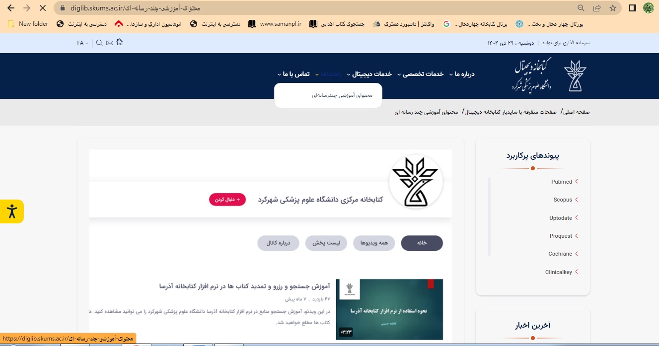 خودآموزی تخصصی از طریق فضای مجازی با دو روش دیگر نیز در کتابخانه های دانشگاه صورت می گیرد. در وب سایت کتابخانه دیجیتال محتواهای آموزشی مختلف، تهیه و به روزرسانی می شود. از جمله راهنماهای آموزشی استفاده از پایگاه های اطلاعاتی و نرم افزارهای پژوهشی به صورت تمام متن و نیز ویدئوهای آموزشی موجود در کانال آپارات کتابخانه مرکزی دو روشی هستند که تمامی افراد به راحتی می توانند استفاده کنند.